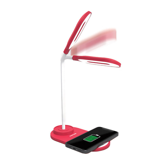 PANTONE LED Lampe mit eingebautem Ladegeraet rot | Soft-Touch-Oberfläche | drei unterscheidliche Lichttöne | Lichtposition dank des flexiblen Arms einstellbar
