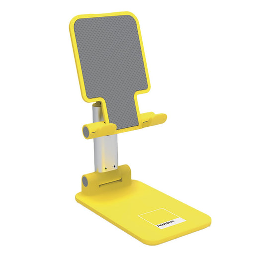 PANTONE Desktop Halterung Mobilgeraete gelb | Universeller und rutschfester Halterungskopf | für Smartphones und Tablets bis zu 12'' | Robuster Sockel und stabiler Ständer