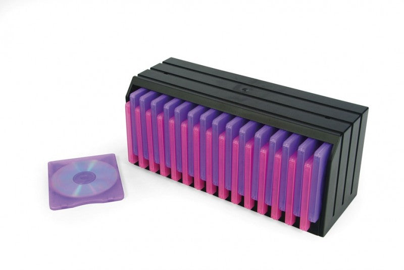 Hochwertige Ablagebox für 30 CDs/DVDs im Standard Jewel Case oder 60 CDs/DVDs im Slim Case. Die CDs sind leicht entnehmbar durch die abwechselnd höhere und tiefere Anordnung. Stapelbar auch mit der CD/DVD Library für CDs ohne Hülle.