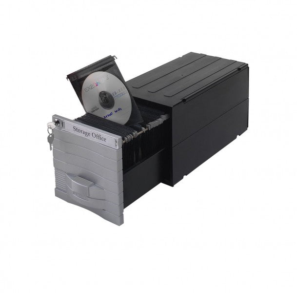 Modulare Schubladenbox für bis zu 160 CDs/DVDs abgelegt in 80 mitgelieferten doppelseitigen CD/DVD Taschen. Hergestellt aus antistatischem Kunststoff und ausgestattet mit Schloss und Schlüssel, garantiert dieses Archivsystem eine sichere Ablage von großen Mengen an CDs/DVDs. Inklusive Verbindungsclips zum Erweitern mit anderen Modulen der Media Solution Serie.