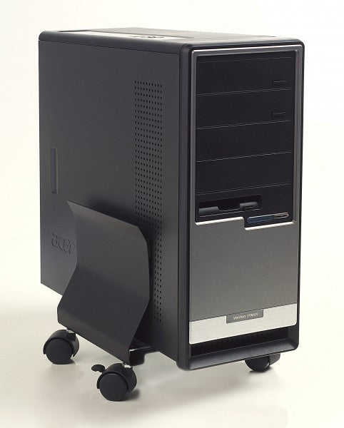 Hochwertiger PC-Halter aus Metall auf Rädern, in der Breite verstellbar von 16 bis 26 cm. Die Räder sind blockierbar, um ein versehentliches Verschieben des PCs zu vermeiden. Die ideale Lösung um den PC in eine sichere und geschütztere Position über dem Boden zu bringen, und um ihn schnell und einfach zu bewegen, zum Beispiel im Falle einer Fußbodenreinigung. Der PC-Halter ist speziell verstärkt worden, um PCs bis zu einem Gewicht von 30 kg zu tragen.