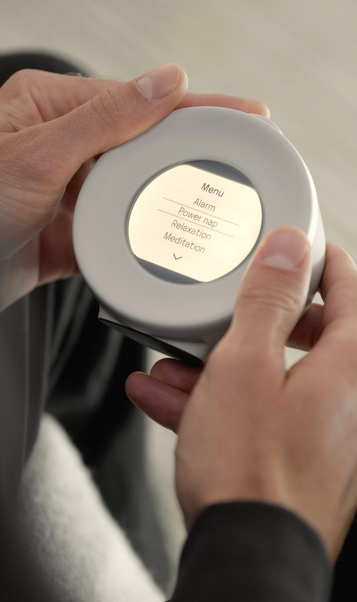 Das Vor-Weck-Licht ahmt die Farbtemperatur der aufgehenden Sonne nach. Deine Morgen werden friedlicher, und das Entfernen deines Handys aus dem Schlafzimmer wird ein riesiger Schritt zu besserer Schlafhygiene.
