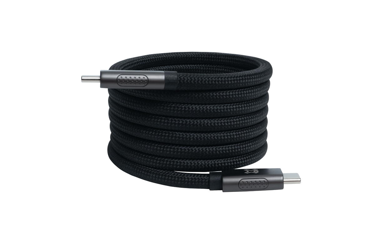 Das X-Magnet Plus Kabel bietet ein innovatives magnetisches System, das eine automatische, verwicklungsfreie Aufwicklung ermöglicht und so die Aufbewahrung und den Transport erleichtert. Die magnetische äußere Schicht hält das Kabel sicher organisiert, reduziert Unordnung und sorgt für Komfort in jedem Arbeitsbereich oder auf Reisen. Mit modernster USB 4.0-Technologie liefert dieses Kabel bis zu 240W Leistung und ist somit ideal zum Laden von Hochleistungsgeräten wie dem MacBook Pro 16" und anderen Laptops mit maximaler Geschwindigkeit.