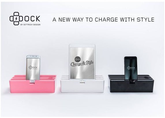 Mit der neuen universellen USB-Ladestation von Dittrich Design haben lästiges Kabel-Wirrwarr und die Suche nach einer freien Steckdose endlich ein Ende. Die D-DOCK lädt zuverlässig und schnell alle mit USB-Kabel aufladbaren Geräte wie Smartphones, iPods, Kameras, Bluetooth-Kopfhörer, GPS-Geräte, Gaming Controller und E-Reader. Dabei ist die D-DOCK kompatibel mit gängigen Herstellern wie Apple, Blackberry, HTC, Huawei, Kindle, LG, Microsoft, Motorola, Nexus, Nokia, Samsung und Sony Ericsson. Zusätzlich verfügt die D-DOCK über einen integrierten Lade-Spot für ein Apple Watch-Ladekabel. Während des Aufladens können Smartphones und Tablets bequem weiter genutzt werden – das Home Button Gate sorgt für einen einfachen Zugriff auf den Home-Button. Zudem fungiert die D-DOCK als Resonanzkörper, was den Sound der entsprechenden Geräte deutlich verbessert.