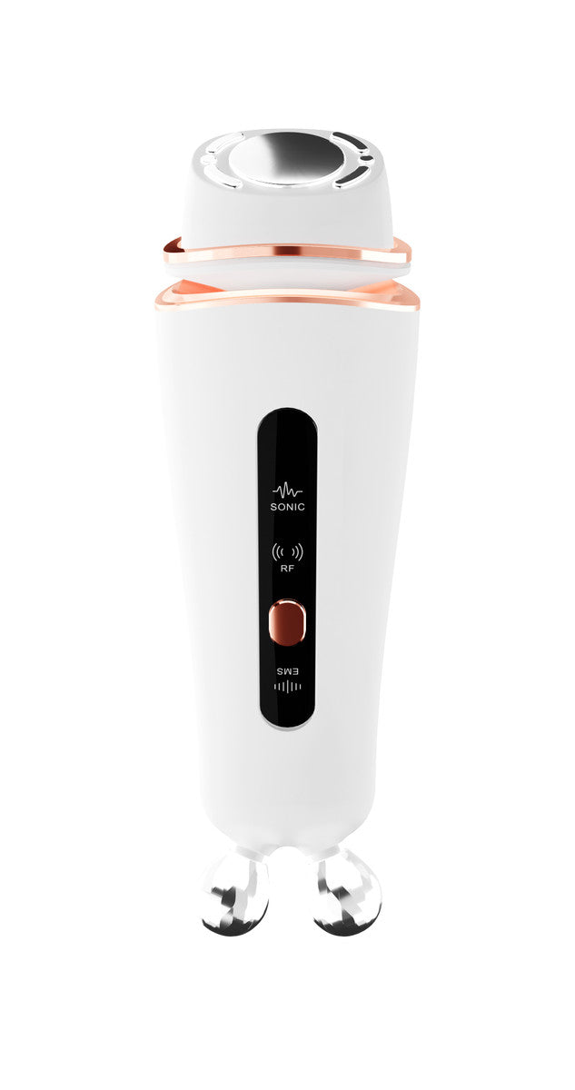 Ein leistungsstarkes Beauty-Gerät mit starkem Verjüngungs- und Lifting-Effekt. Es kombiniert Ultraschallvibrationen und positive Ionen, um die Poren gründlich zu reinigen und Schmutz und Make-up-Rückstände zu entfernen. Mit RF-Radiofrequenz und negativen Ionen aktiviert es Kollagen und verbessert das Eindringen von kosmetischen Wirkstoffen in die Haut. Die EMS-Mikroströme heben und straffen die Muskeln und definieren die V-förmige Kontur Ihres Gesichts. Spezielle Diamantfacetten, die im Rollerkopf verwendet werden, machen jede Behandlung äußerst angenehm und entspannend.