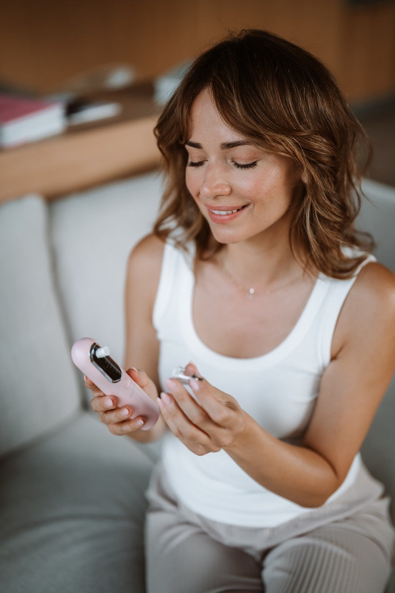 Derma Blush ist ein perfektes Gerät für die Mikrodermabrasion zu Hause. Es ermöglicht Ihnen, die verhornte Schicht der Epidermis schnell zu entfernen und die Haut tief zu reinigen, so dass sie glatt und weich wird. Sie bekämpft die ersten Anzeichen der Hautalterung, reduziert feine Linien, verbessert die Elastizität und die Sauerstoffversorgung der Zellen. Sie ist sicher und nicht invasiv und kann bei empfindlicher Haut von Menschen jeden Alters angewendet werden.