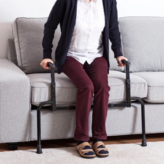 Das Hinsetzen und Aufstehen von der Couch wird für Sie kein Problem mehr sein! Wenn Sie mit Problemen mit dem Bewegungsapparat zu tun haben, setzen Sie auf den soliden Metallrahmen dieses praktischen Hilfsmittels. Er lässt sich leicht ein- und ausklappen und bietet Ihnen jederzeit einen festen Halt. Geeignet für Sofas und Sessel Stützgriffe mit ergonomischen Griffen, die an individuelle Bedürfnisse angepasst werden können, bieten Halt, Stabilität und Sicherheit mit Griffen mit TPR und gummierten Beinen Maximale Tragfähigkeit 135 kg Abmessungen: Länge 60,5 - 86 cm, Breite 59 - 67 cm, Höhe 60 - 84,5 cm