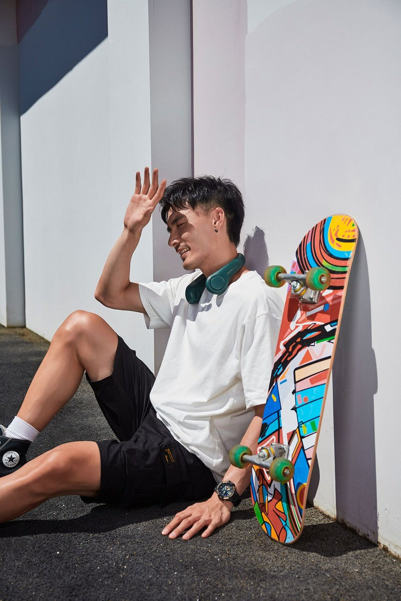 JISULIFE hat den Nackenventilator von Arbeitern in heißen Umgebungen inspirieren lassen. Dieser USB-aufladbare Mini-Ventilator hat nur 268g gewogen und ist aus hautfreundlichem ABS-Material gefertigt worden. So haben Sie mit mehr Ruhe arbeiten können.