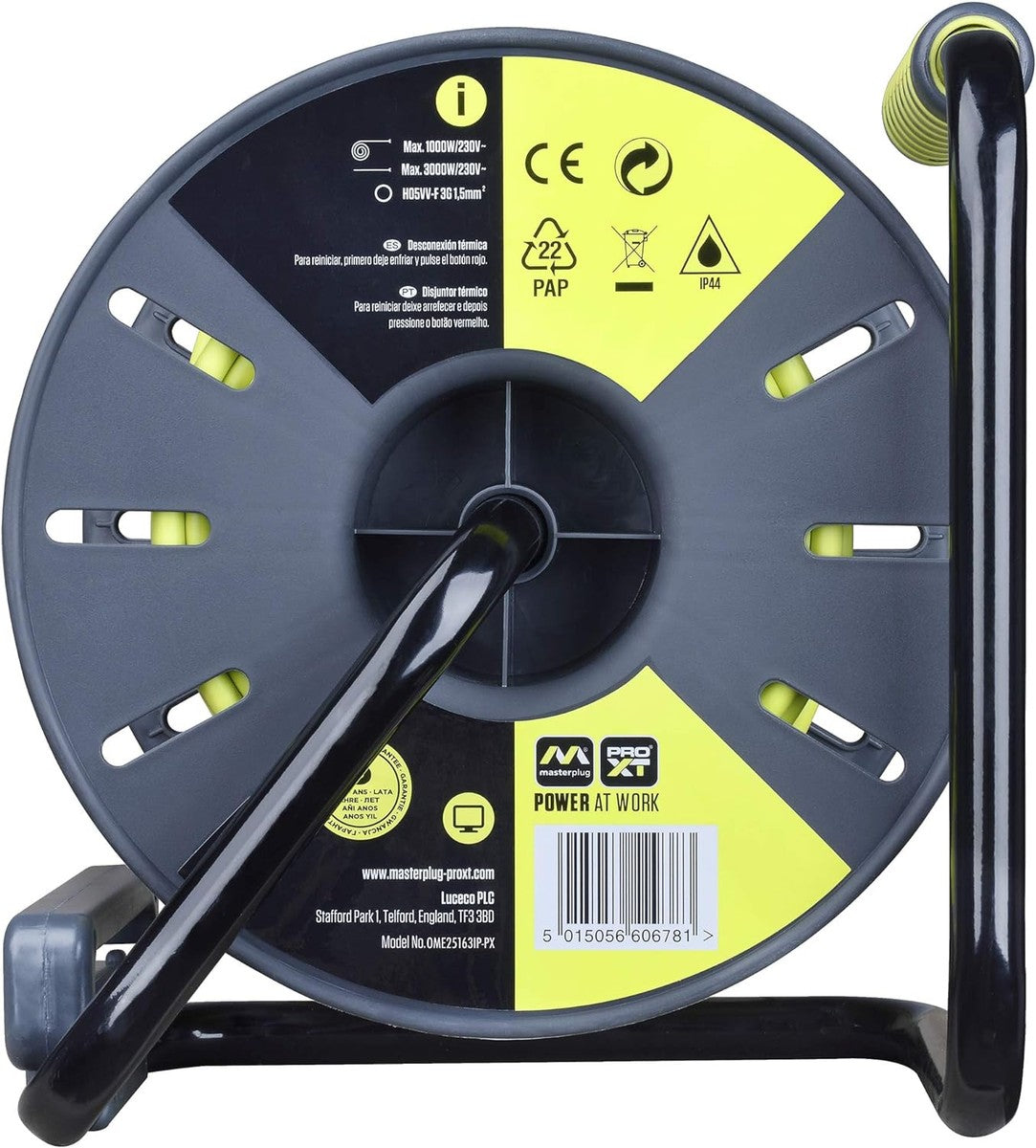 MASTERPLUG Pro-XT Kabeltrommel 25m Outdoor 3 Steckdosen mit wasserdichter Abdeckung