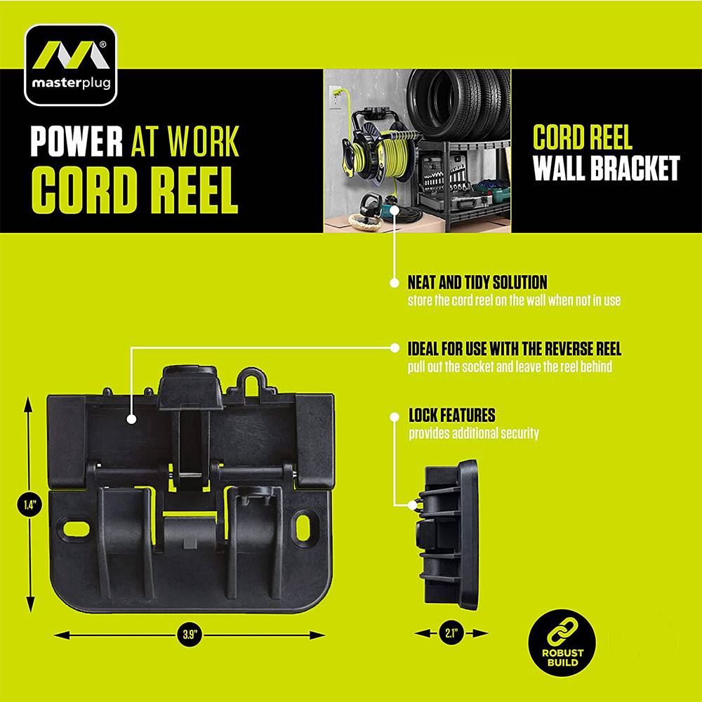 Diese von Masterplug entwickelte Wandhalterung ist für die Wandmontage von Masterplug-Markenwicklern konzipiert. Nie wieder die Rollen am Boden eines Regals, müssen Sie Ihren Aufroller immer griffbereit haben. Dieses Produkt ist kompatibel mit allen Masterplug-Aufrollern. Mit diesem einfachen Zubehör können Sie den elektrischen Aufroller an der Wand befestigen, um ihn zu lagern oder ihn zu verwenden, wenn Sie ihn brauchen. Masterplug die professionelle Qualität!