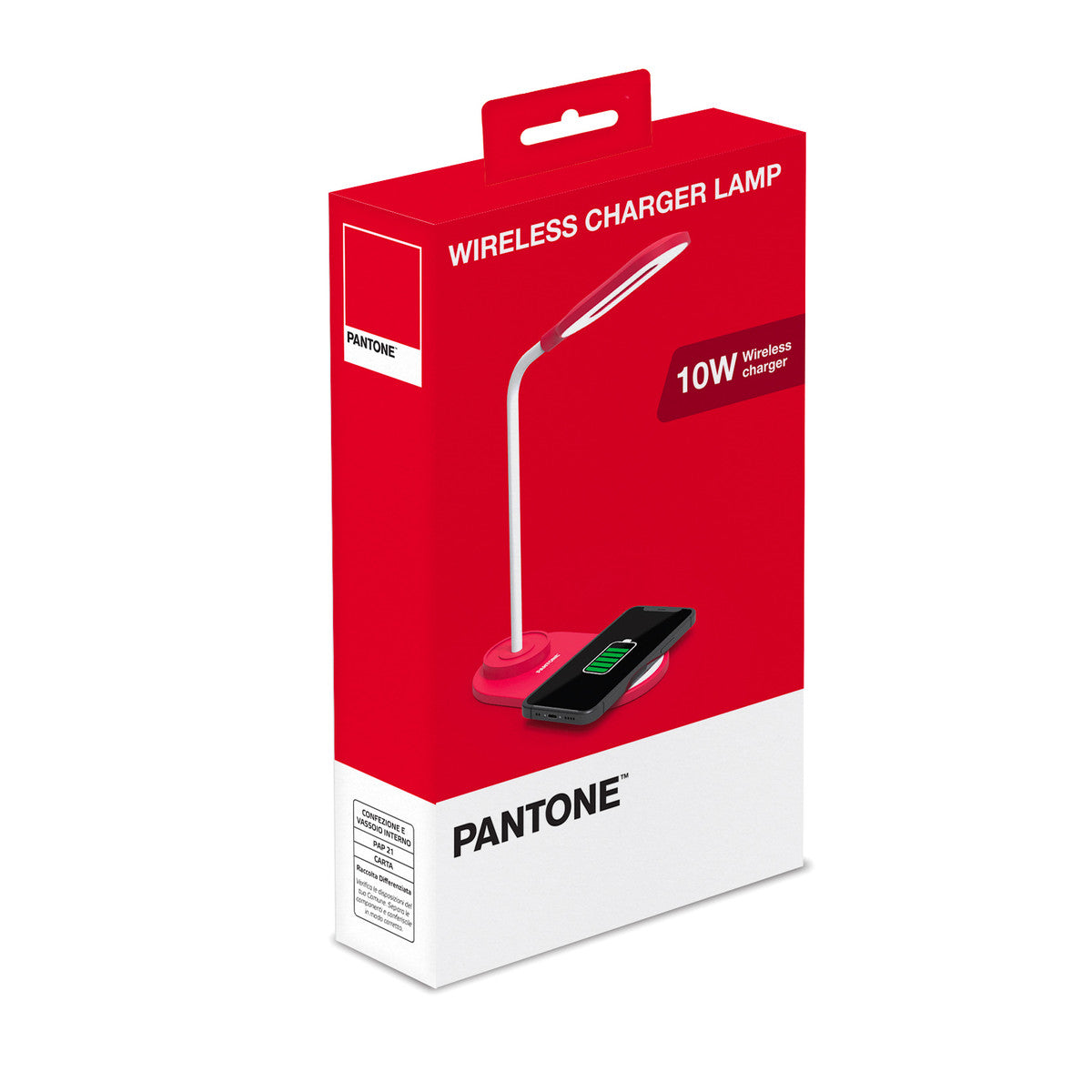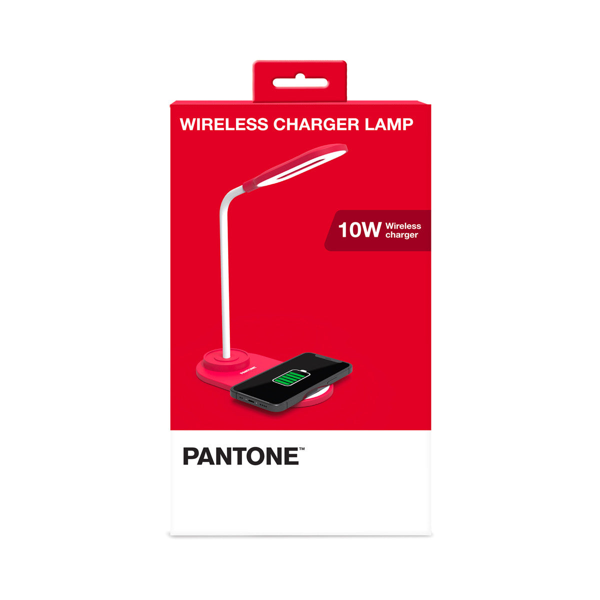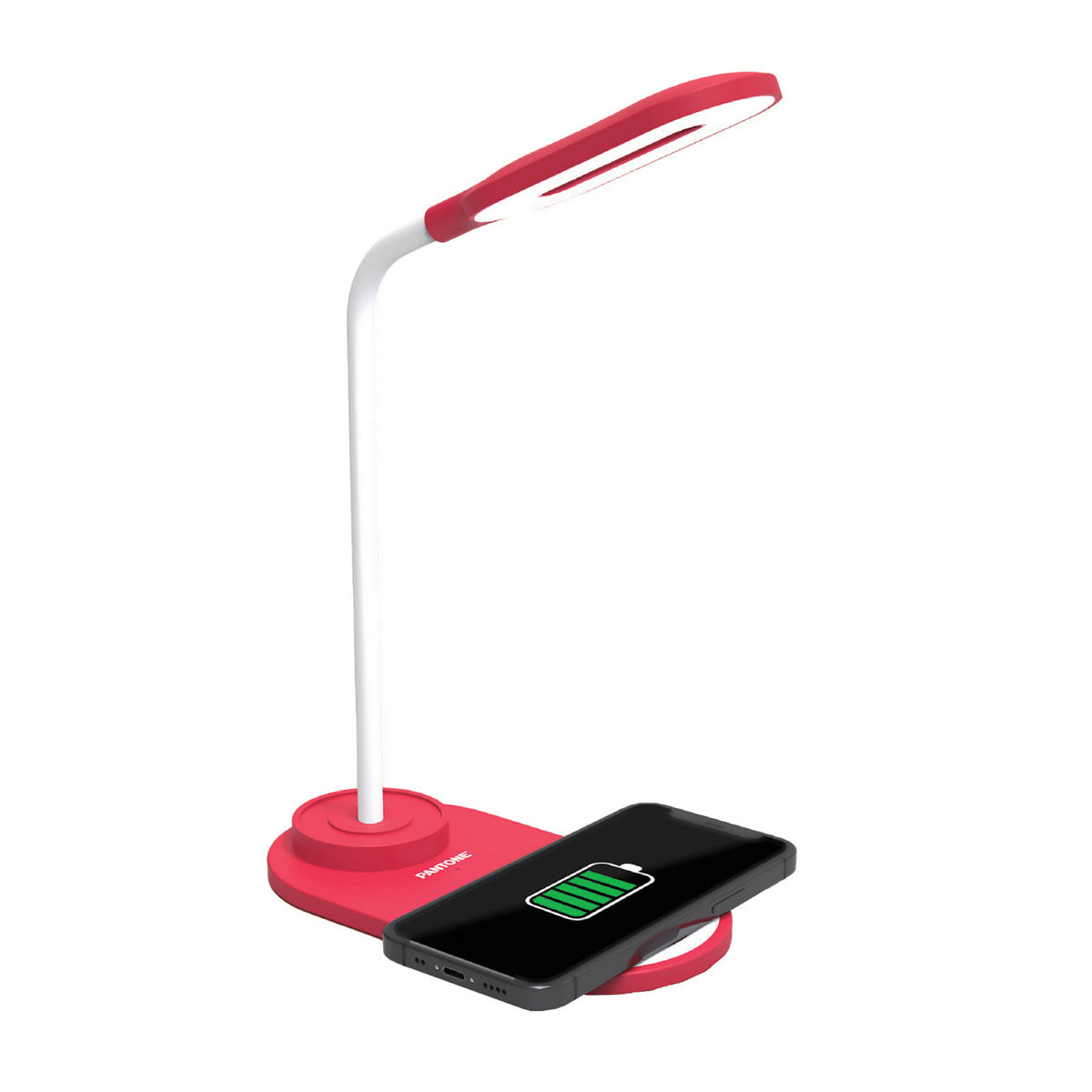 PANTONE LED Lampe mit eingebautem Ladegeraet rot | Soft-Touch-Oberfläche | drei unterscheidliche Lichttöne | Lichtposition dank des flexiblen Arms einstellbar