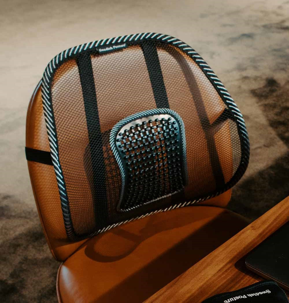Verwenden Sie die Lendenwirbelstütze täglich, um natürlich aufrecht zu sitzen. Der Küchenstuhl, Autositz oder Bürostuhl wird mit der Stütze ergonomisch.