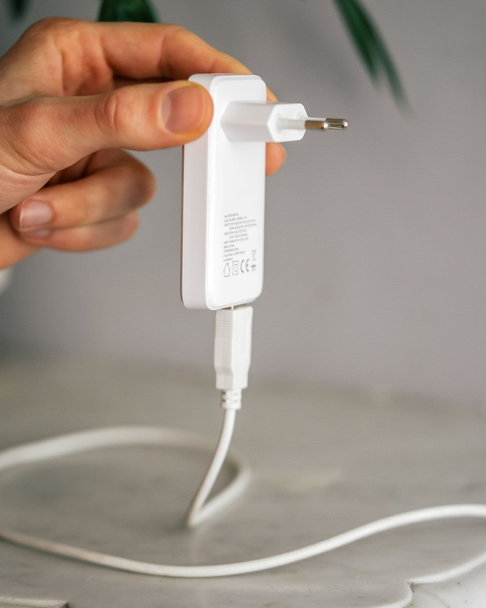 Das ultra-kompakte Design und die originelle flache Form machen dieses Ladegerät sehr praktisch und nehmen nur minimalen Platz in der Steckdose ein.